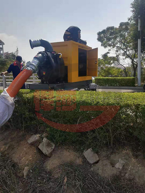 廈門大學(xué)訂購一臺600立方防汛排水泵車,該款泵車采用強自吸排污泵頭,自吸性能好,通過性強。配置四輪移動拖車,帶手剎……